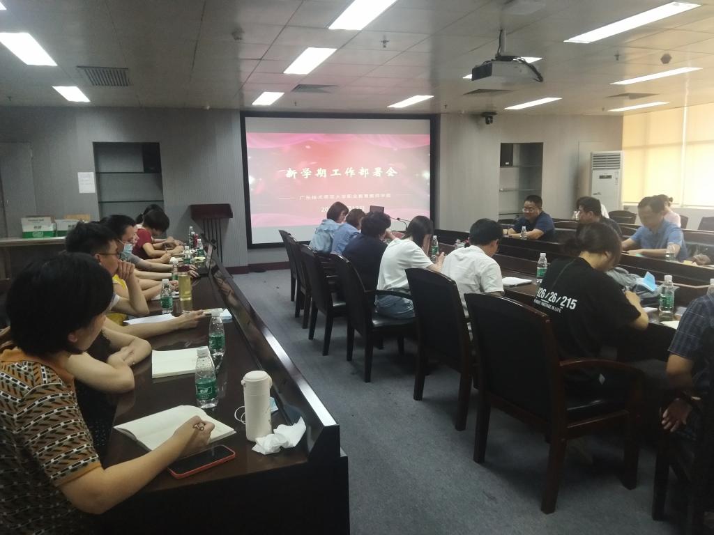 9月13日上午,职业教育教师学院在工业中心715召开新学期教职工大会,主要传达学校相关文件精神、部署安排新学期的重点工作。学院直属党支部书记喻忠恩主持会议,院长邓文新、副院长吴天生、刘海兰及学院全体教师出席本次会议。