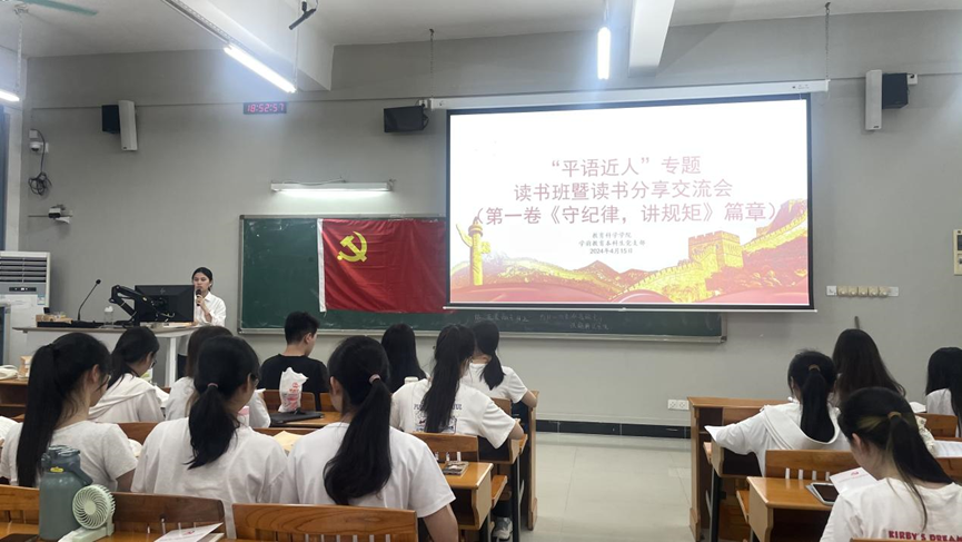 在第29个“世界读书日”即将来临之际,4月15日,金年会学前教育本科生党支部在三教407课室召开“平语近人”专题读书班暨读书交流分享会,全体成员参加会议,会议由党支部学生副书记林纯同志主持。