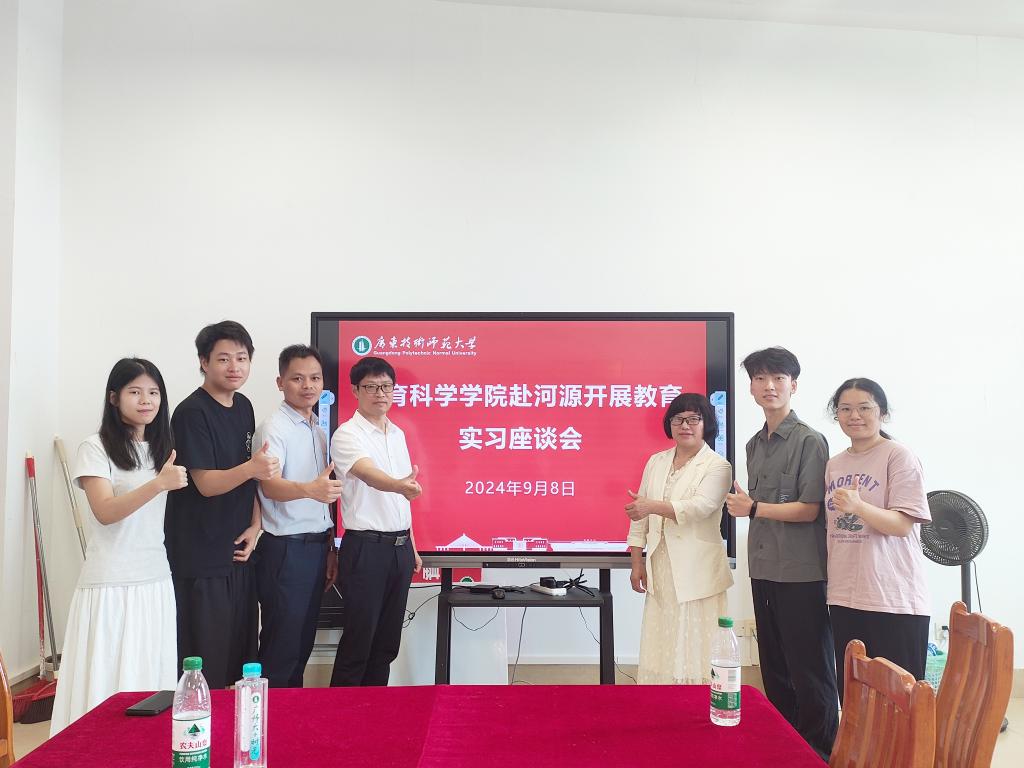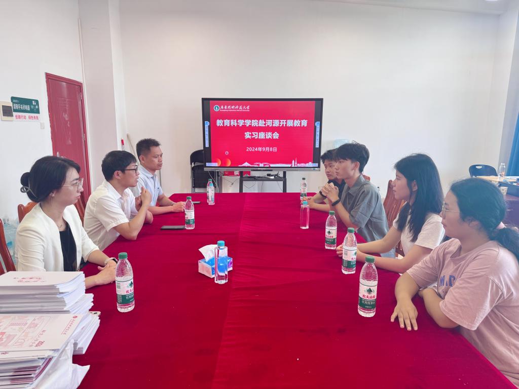 为深化教育实习实践,提升师范生专业技能,了解学生在实习基地的基本情况,金年会于9月8日上午赴河源市开展教育实习座谈会。教科院院长熊华军、副书记吴水爱、副院长谢德新、骆明丹老师、以及梁欢、宋米堃,唐洁,胡萍妹等4位实习生参加座谈会。会议由熊华军院长主持。
