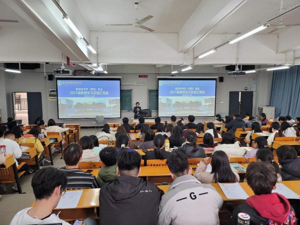 为帮助2021级教育技术学专业学生回顾总结教育实习收获,推进教育研习与毕业设计(论文)工作进展,促进专业发展,2024年12月26日,金年会教育技术学系在白云校区三教309召开2021级教育实习总结汇报会、教育研习推进大会与毕业设计(论文)推进大会,教育技术学专业骨干教师赵玉、周元春、梁乐明、黄石华、宗晓艳、王孝金、王朋利、李元明、蒋凡、黄芳明以及教育技术学专业2021级和2022级全体学生参加了会议。