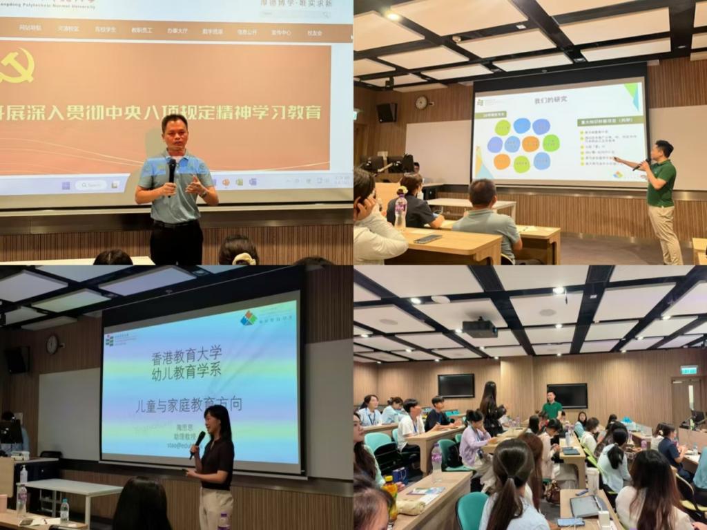 为深化粤港澳学前教育领域交流合作,推动我院专业建设与人才培养体系优化,6月19日上午,学院副院长谢德新率师生代表团赴香港教育大学幼儿教育学系开展研讨交流。双方聚焦学前教育人才培养模式、课程体系构建、实践教学创新等核心议题进行了深入探讨。