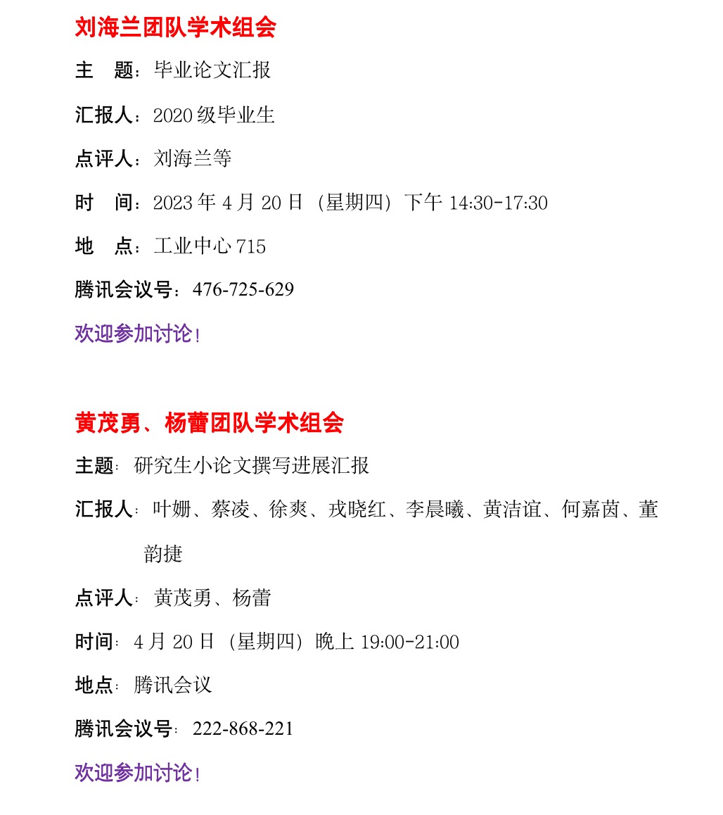 研究生学术组会(第9周 4.17-4.23)