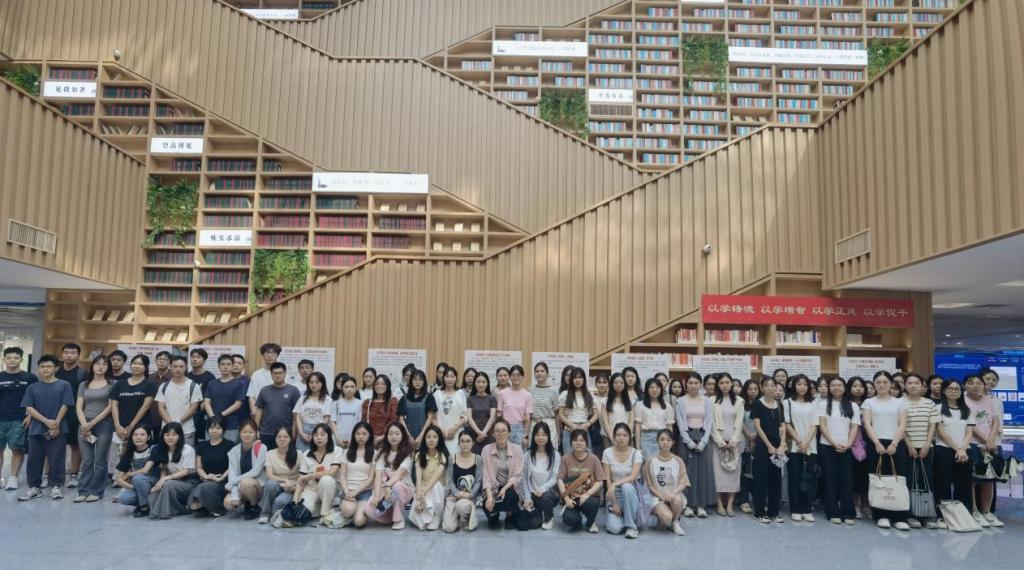 正式开始参观活动前,2024级全体新生于图书馆二楼服务台合影留念。