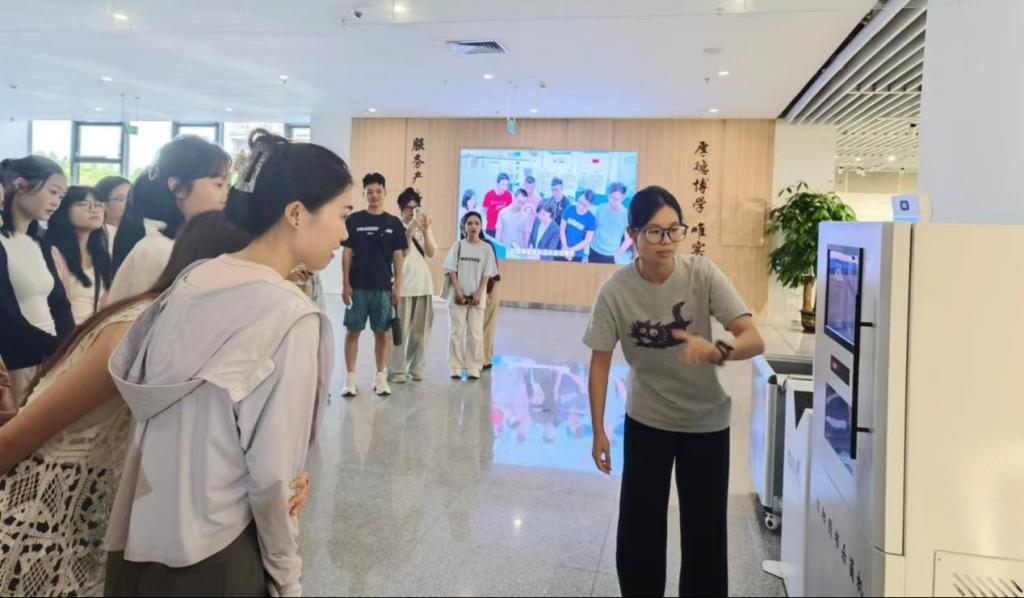 新学年,新图书馆,新气象,图书馆的内部结构设计巧妙,充满了现代感。中央是一个璀璨的大厅,周围是环形的书架,摆放着种类众多的书籍。在图书馆讲解人员的带领下,同学们首先参观了二楼服务台的中间透明玻璃栈台,领略了嵌在玻璃中间的校训:厚德博学,唯实求新。图书馆讲解员依次为2024级新生介绍图书馆出入闸门的人脸识别系统、借阅图书的智能平台、图书消毒柜使用、文化艺术展览空间、藏书区域、信息岛功能、乐享吧及研讨室借用预约。