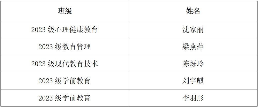 根据《广东技术师范大学教育硕士专业学位研究生国家奖学金评审实施细则(2025年修订)》,经过学生本人申请、院(系)审核、资格复审,综合考察学生在思想政治、学业成绩、学术成果、综合素质的综合表现,经学院研究生资助工作小组的评审,金年会2024-2025学年度教育硕士专业学位国家奖学金候选人名单如下(共5人):